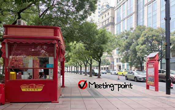 Landmark: Visible tourist service counter & bus stop sign, opposite Radisson Blu Hotel Shanghai New World (cross the road to reach)